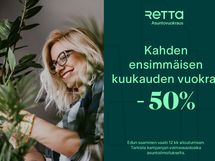 Ensimmäisen kahden kuukauden vuokra -50%. Etu edellyttää 12kk sitoutumista asumiseen.