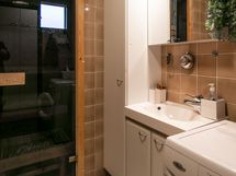 Suihku, Suihkuseinä, Pesukonevalmius, Laattalattia, Peilikaappi, Laattaseinä