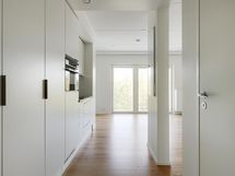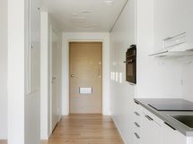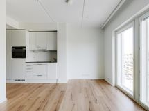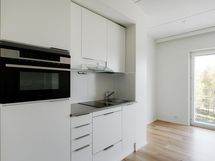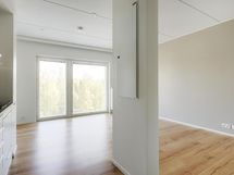 Kaunis tehosteseinä tuo tähän kotiin luonnonläheistä tunnelmaa. Iso lattiaan asti ulottuva ikkuna ja ranskalainen parveke tuovat paljon valoa. Lattiamateriaalina asuinhuoneissa kestävä tammilaminaatti, jossa aitoa puuta muistuttava pinta. Kaikki kaapistot ovat valkoisia. Hyvin varustellussa keittiössä astianpesukone, jääkaappi pakastinlokerolla, keraaminen liesitaso, kalusteuuni ja liesikupu mahdollistavat miellyttävät kokkailuhetket. Vaaleanharmaa työtaso tuo raikkaan ilmeen keittiöön. Kylpyhuoneen seinissä on valkoinen mattalaatta, lattia harmaata laattaa, tilavaraus ja liitännät pyykinpesukoneelle ja kuivausrummulle, suihkunurkkaus on varustettu lasiseinällä. Ikkunoissa on sälekaihtimet.