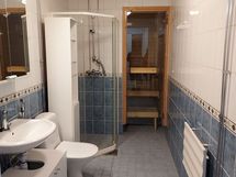 - Suihku, Suihkuseinä, Pesukone, Laattalattia, Allaskaappi, Laattaseinä, Lattialämmitys