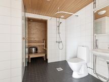 - Peilikaappi. KH: Mukavuuslämmitys asunnon sähköstä. Pesukoneliitäntä.