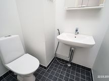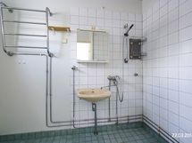 Erillisessä keittiössä on tilaa ruokapöydälle kotoisasti ikkunan ääressä. Kylpyhuoneessa on tilavaraus pyykinpesukoneelle.