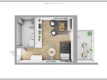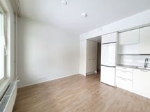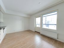 Parvekkeellinen ylimmän kerroksen kompakti yksiö etsii uutta asukasta. Olohuoneeseen avautuva avokeittiö on varusteltu moderneilla kodinkoneilla. Kylpyhuoneessa pesukoneliitäntä.
