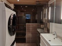 • Sauna ja kylpyhuone, jossa pesutorni