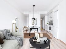 Tervetuloa viihtymään tähän valoisaan ja toimivaan pikkukotiin. Asunnossa on vaaleat pintamateriaalit, ja lattiat ovat vaalean puun sävyistä laminaattia, jotka luovat raikkaan ja avaran tunnelman.