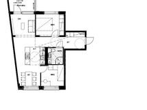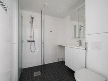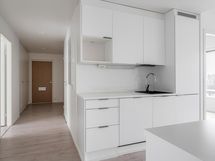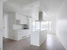 Each apartment includes either a balcony, French balcony, or railing, except for the top-floor units. The floors are laminate, and the bathrooms have space reserved for a washing machine. The kitchens are equipped with integrated dishwashers. The building features a laundry room, drying room, and private storage units for each apartment. Residents can also reserve sauna shifts. Shared facilities include an outdoor equipment storage, a courtyard, and a playground. Parking spaces are available for rent depending on availability.