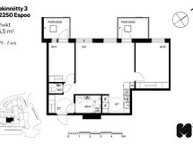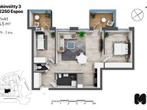 Tässä seitsemännen kerroksen asunnossa on moderni keittiö, jonka varusteluun kuuluu keraaminen liesi ja astianpesukone. Lattiamateriaalina on tyylikäs ja helppohoitoinen laminaatti. Kylpyhuone on laatoitettu sekä tilava. Kylpyhuoneessa on myös kiinteistön sähköön kytketty lattialämmitys.