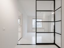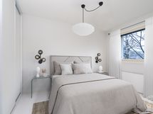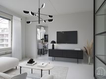 Asunto päivitettiin vaaleilla pinnoilla ja kylpyhuone uudistettiin kaikkien kalusteiden osalta. Säilytystilaa lisättiin koko huoneistossa