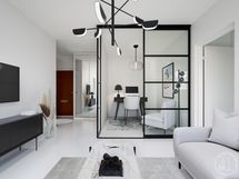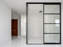 Olohuoneeseen rakennettiin kotimaisen Mirror Linen -tuotteella tyylikäs lasista tehty huone, jonka ansiosta olohuone muuttuikin