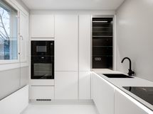 Keittiönä laadukas Noblessan valkoinen keittiö, jossa ei ole materiaaleissa tai kodinkoneissa säästelty. Kodinkoneina mm. Elican