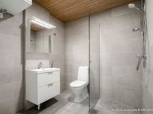 - Pesutilojen kuvaus: Varustus: peilikaappi, allaskaappi, bidee-suihku, pesukoneliitäntä, suihku, suihkuseinä.
