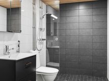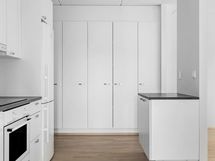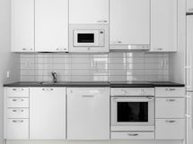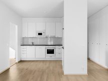 Asunnossa on moderni keittiö sekä tyylikäs kylpyhuone, josta löytyy pyykinpesukoneelle liitännät.