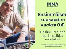 1. kuukausi 0€, etu edellyttää 12kk sitoutumista asumiseen. Lisäksi ilmainen parkkipaikka vuodeksi!