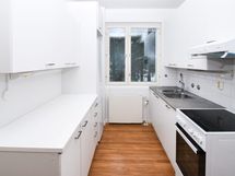 Kodikas kolmio Tapiolassa Isot ikkunat ja vehreä pihamaisema - loistoyhdistelmä Hyvin hoidetussa pihapiirissä, Tapiolan palveluiden tuntumassa on vapautunut näppärän kokoinen vuokrakolmio. Asunto sopii mainiosti esimerkiksi kotona töitä tekevälle, sillä toisesta makuuhuoneesta saa helposti sisutettua työhuoneen. Avaruuden tuntua kotiin tuovat isot ikkunat, joista avautuu vehreä pihamaisema. Asuinhuoneissa on laminaattilattiat. Kylpyhuoneessa on laattalattia ja osittain kaakeloidut seinät.