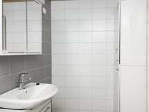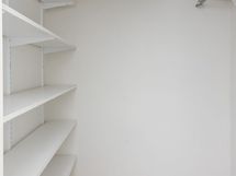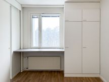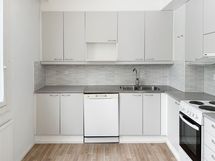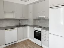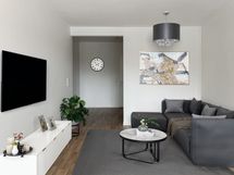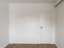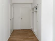 Tämä Lumo koti tarjoaa avarat ja valoisat huoneet. Kodissa on kaksi vaatehuonetta, toinen makuuhuoneessa ja toinen eteisessä. Lattiassa on tumma laminaatti ja seinät ovat maalatut. Keittiöstä löytyvät valkoiset kaapit metallivetimin sekä liesi, jääpakastinkaappi ja astianpesukone. Valkoisella ja harmaalla laatoitettu kylpyhuone on varustettu liitännöillä omalle pyykinpesukoneelle. Iso lasitettu parveke avautuu suojaisalle sisäpihalle.