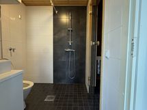 Suihku, Suihkuseinä, Pesukonevalmius, Peilikaappi, Laattaseinä, Laattalattia, Avattava ikkuna, Lattialämmitys