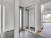 - Pesutilojen kuvaus: Yläkerrassa. Varustus: suihkuseinä, pesukoneliitäntä, lattialämmitys, wc-istuin, suihku, peilikaappi. Erillisen WC:n kuvaus: Alakerrassa. Varustus: suihku, peilikaappi.