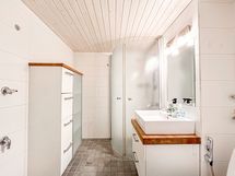 - Allaslaatikosto, käsisuihku, kääntyvä suihkuseinä, laatoitettu, peili, pesukoneliitäntä, suihku