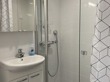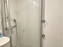 Kylpyhuone on kokonaan laatoitettu ja siellä on suihkunurkkaus, paikka pesukoneelle sekä lattialämmitys. Keittiö on poikkeuksellisen hyvin varusteltu: keraaminen liesitaso ja erillisuuni, liesituuletin, integroitu jääkaappi, mikroaaltouuni ja integroitu astianpesukone.