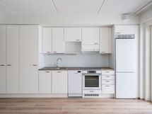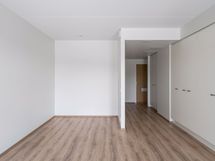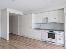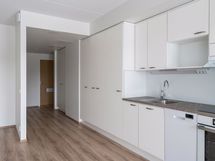 Avara ja tilava yksiö. Toiselle seinustalle sijoittuvat eteisen kaapit ja avokeittiö, mikä lisää avaruutta ja helpottaa kodin sisustamista oman näköiseksi. Näppärään alkoviin saat tehtyä makuusopen. Kodin kruunaa lasitettu terassi, jonka jatkeena on ihana oma piha, jonka molemmin puolin on pensasaidat.