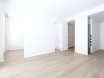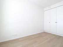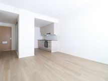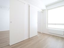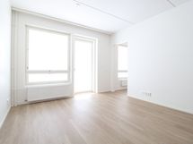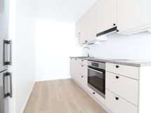 Asunnon värimaailma on tyylikkään moderni ja vaalea, mikä tekee asunnosta todella avaran tuntuisen. Keittiön laadukkaisiin kodinkoneisiin lukeutuu jääkaappipakastin, integroitu liesi, kalusteuuni sekä astianpesukone. Kylpyhuoneessa on tilavaraus ja liitännät pyykinpesukoneelle. Tilavalla lasitetulla parvekkeella kelpaa todellakin viettää aikaa. Makuuhuoneen saa rajattua omaksi tilakseen liukuovilla.