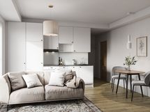 Ilmoituksen kuvat huoneistoa vastaavasta asunnosta. Materiaalieroja voi ilmentyä huoneistojen välillä. Huomioithan, että näkymät vaihtelevat kerroksien välillä.