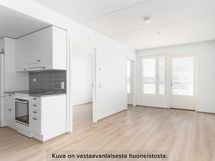 Tilava kaksio, jonka pohjaratkaisu on avara ja asuintilat jatkuvat isolle lasitetulle parvekkeelle!