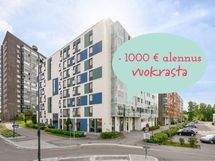 KAMPANJA: Uusiin vuokrasopimuksiin -1000€ vuokra-alennus ensimmäisestä täyden kuun vuokrasta, kun sopimus alkaa viimeistään 29.4.2026. Sopimukseen sitouduttava vuodeksi. Mikäli sopimus irtisanotaan ennen ensimmäistä mahdollista irtisanomispäivää, tulee maksettavaksi 1 kk vuokraa vastaava sakko. Kampanjoiden yhteydessä vakuus vain 350€. Asunto on mahdollista vuokrata myös ilman kampanjaa.