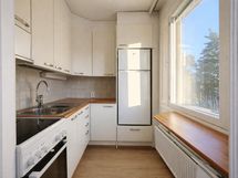 Asunnon pohjaratkaisu on toimiva ja tilava yksiö tuntuu neliöitään suuremmalta. Keittiö on varustettu jääkaappipakastimella, liedellä ja liesituulettimella, ja kylpyhuoneessa on uusi pesukone valmiina vuokralaisen käyttöön. Eteisessä olevat korkeat kaapistot tarjoavat runsaasti säilytystilaa, mikä tekee arjesta sujuvaa.