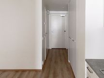 Asunnon lattiat ovat tammilaminaattia ja seinät ovat maalipinnalla. Sisäänkäynti tähän kotiin tapahtuu lasitetun luhtikäytävän kautta.