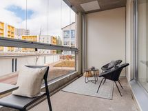 Valoisa asunto isolla lasitetulla parvekkeella ilta-aurinkoon!