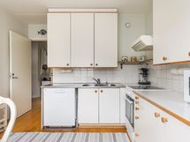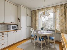 - Keittiön varusteet: Jääkaappipakastin, uuni, liesi, astianpesukone ja kiinteät valaisimet. Liesi: Induktioliesi. Työtason materiaali: Puu ja laminaatti. Välitila on laatoitettu.