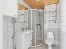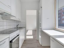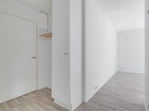Asunnon eteisessä on mukavasti tilaa ja eteisestä on käynti kylpyhuoneeseen, josta löytyy pyykinpesukoneen liitännät.