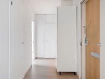 Läpitalon asunnossa on suojaisa parveke sekä vaatehuoneen ja eteiskaappien ansiosta hyvin säilytystilaa. Kylpyhuoneessa on tilavaraus pyykinpesukoneelle.