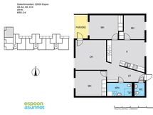 Autopaikkoja kohteessa: 44. Autopaikka: Paikka parkkihallissa lämmitystolpalla 45€/kk.