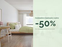 Kampanja! Tee vuokrasopimus ja asu kuukausi puoleen hintaan. Kampanjasopimuksen minimiasumisaika on 6 kuukautta. Kampanja ei koske käyttökorvauksia.