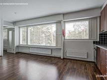 Modernit varusteet ja isot ikkunat Remontoitu vuokra-asunto Tapiolassa Valoisan kaksion keittokomero ja olohuone muodostavat avoimen, viihtyisän tilan, joka on helppo kalustaa mieleiseksi. Koko asunnon levyiset ikkunat avautuvat aamuaurinkoon. Mukavan kokoisessa makuuhuoneessa on komerotilaa vaatesäilytykselle. Lattiat ovat pähkinän väristä laminaattia ja muuten valkoisia seiniä elävöittää yksi vaaleaan siniseen vivahtava tehosteseinä.