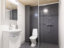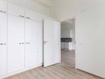 Tässä Lumo-kodissa on toimiva tilaratkaisu. Eteinen ja pesuhuone ovat omassa rauhassa kulmauksessa, vähän erillään muusta asunnosta. Eteisestä on suoraan käynti keittiötilaan, josta aukeaa koko muu oleskelu. Makuuhuone on komerokaappeja säilytykseen. Upea, suojaisa koko huoneistonlevyinen lasitettu parveke kruunaa asunnon asumismukavuutta.