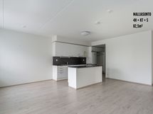 The living room floors are laminate, the walls are painted, and the bathrooms are tiled. The kitchens are equipped with a fridge-freezer, a built-in oven, or in smaller apartments, a floor stove, a ceramic cooktop and a dishwasher. The bathrooms have connections and space for a washing machine and electric comfort floor heating. Some apartments have glassed-in balconies and some have Juliet balconies.