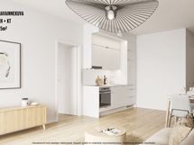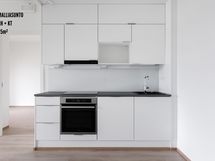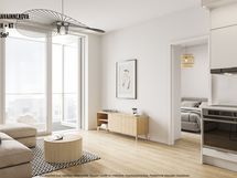 The company is a functional block of flats with eight floors and 70 apartments. The apartments combine high quality materials and appliance solutions. The light coloured apartments have laminate flooring and underfloor heating with water circulation for added comfort. All apartments have a glazed balcony. The kitchen is equipped with an integrated dishwasher, an oven, an induction hob and a fridge-freezer combination. The tiled bathroom has electric comfort underfloor heating and space for a washing machine.