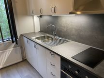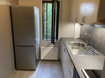 Uudistetussa keittiössä on hyvin säilytystilaa ja paikka pienelle ruokapöydälle. Toimivan kokoisessa ja kauttaaltaan remontoidussa kylpyhuoneessa on pesukoneliitäntä. Taloyhtiössä on myös sauna ja pesutupa. Vuokra sisältää taloyhtiön laajakaista yhteyden.