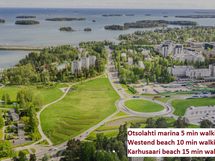 - outdoor trails to the seashore directly from the front door, swimming beach, bike and canoe rental options, Laajalahti Nature Reserve, water park Laguuni, local archipelago accessible by public boat routes, 18-hole Tapiola Golf.