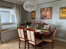 Enjoy Tapiola's extensive services, excellent transport connections, the sea and nature, culture, and exercise. Relax in the sauna after a day and enjoy the cozy balcony with refreshments. Guests have access to a large bedroom, a separate kitchen, a spacious living room, a cozy dining area, a roomy hall with a workspace, a private sauna, and two bathrooms.