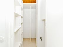 Tämän kodin käytännöllinen erikoisuus on erillinen vaatehuone, jossa on tila ja liitännät pyykinpesukoneelle.