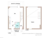 Ensimmäisen kerroksen huoneistoala on 30,5m2 ja 2. kerroksen huoneistoala on 10m2.