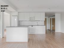 Keittiön varusteluun kuuluvat induktioliesi, sekä astianpesukone ja asunnon koosta riippuen monitoimiuuni tai yhdistelmäuuni ja kylmälaitteena jääkaappi ja pakastinkaappi tai jääkaappipakastin yhdistelmä. 30,5m2 yksiöissä on jääkaappi pakastinlokerolla.