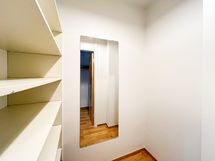Keittiön yhteydestä on kulku parvekkeelle, mikä lisää asumismukavuutta. Eteisessä on hyvin säilytystilaa naulakon ja kaappien muodossa, ja sieltä on myös käynti erilliseen vaatehuoneeseen.
