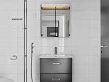 Asunnossa on modernikeittiö tiskikoneella ja tyylikkäässä kylpyhuoneessa on liitännät pesukoneelle.