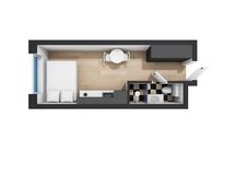 Studion kuukausihinta perustuu majoituksesi kestoon; mitä pidempään majoitut, sitä pienemmän kuukausimaksun maksat. Ilmoitettu kuukausihinta on laskettu 12 kuukautta tai pidempään jatkuvalle majoitukselle, jolloin kuukausihinta on edullisimmillaan. Katso tarkka hinta verkkosivuiltamme, jos majoituksesi arvioitu kesto on tätä lyhyempi. Kuukausihinnalla majoituksesi kesto voi olla mitä tahansa yhden ja 12 kuukauden väliltä.