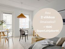 Kampanjaehdot: Kampanja voimassa Juli Niittykummun Helmen asuntoihin, joihin solmitaan toistaiseksi voimassa oleva vuokrasopimus 6 kuukauden minimiasumisajalla. Jotta voit hyödyntää kampanjamme, asunnon vuokraus on tehtävä verkkosivuillamme 1.-30.4.2026 välisenä aikana. Vuokrauksen yhteydessä maksettu ennakkovuokra vähennetään kolmannelta täyden kuun vuokralaskulta ja kampanjaetu vähennetään neljänneltä täyden kuun vuokralaskulta. Mikäli sopimus on kestänyt alle 4 kuukautta, kampanjaetua ei hyödynnetä eikä sitä hyvitetä vuokralaskulta. Mikäli sopimus irtisanotaan ennen minimiasumisajan päättymistä, aiemmin hyvitetty kampanjaetu laskutetaan viimeisessä vuokralaskussa. Kampanjaetua ei voi hyödyntää aiemmin tehtyihin vuokrasopimuksiin eikä etua voi yhdistää muihin kampanjoihin. Kampanjaetua ei voi hyödyntää sopimusmuutoksissa, asunnonvaihdoissa Juli-kodista toiseen minimiasumisaikana tai jos vuokranmaksu ei ole ajan tasalla. Kampanjaetu ei koske vesimaksua.